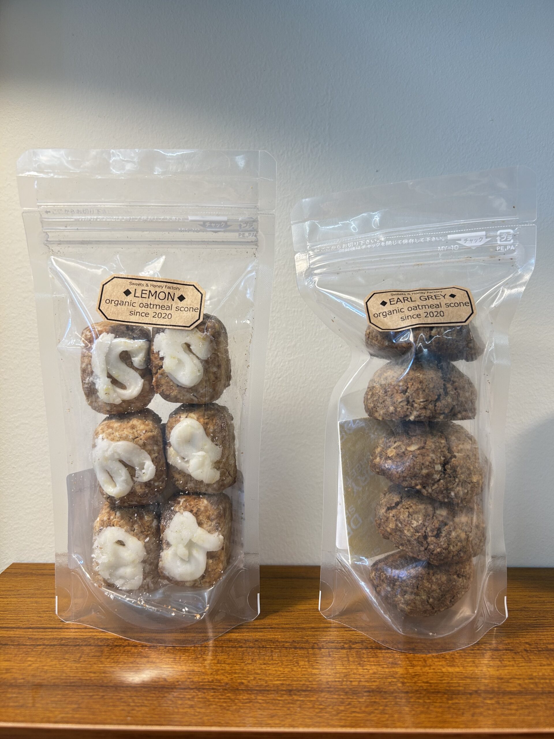 オートミールスコーン(アールグレイ・レモン) オーガニックオートミール使用のグルテンフリークッキー 700円 一つ一つ丁寧に仕上げた、グルテンフリーのオートミールスコーン。ザクザクとした食感と、素材の優しい味わいが広がります。 アールグレイの上品な香り、レモンの爽やかさをお楽しみください。 レインボーワーク ネットショップ